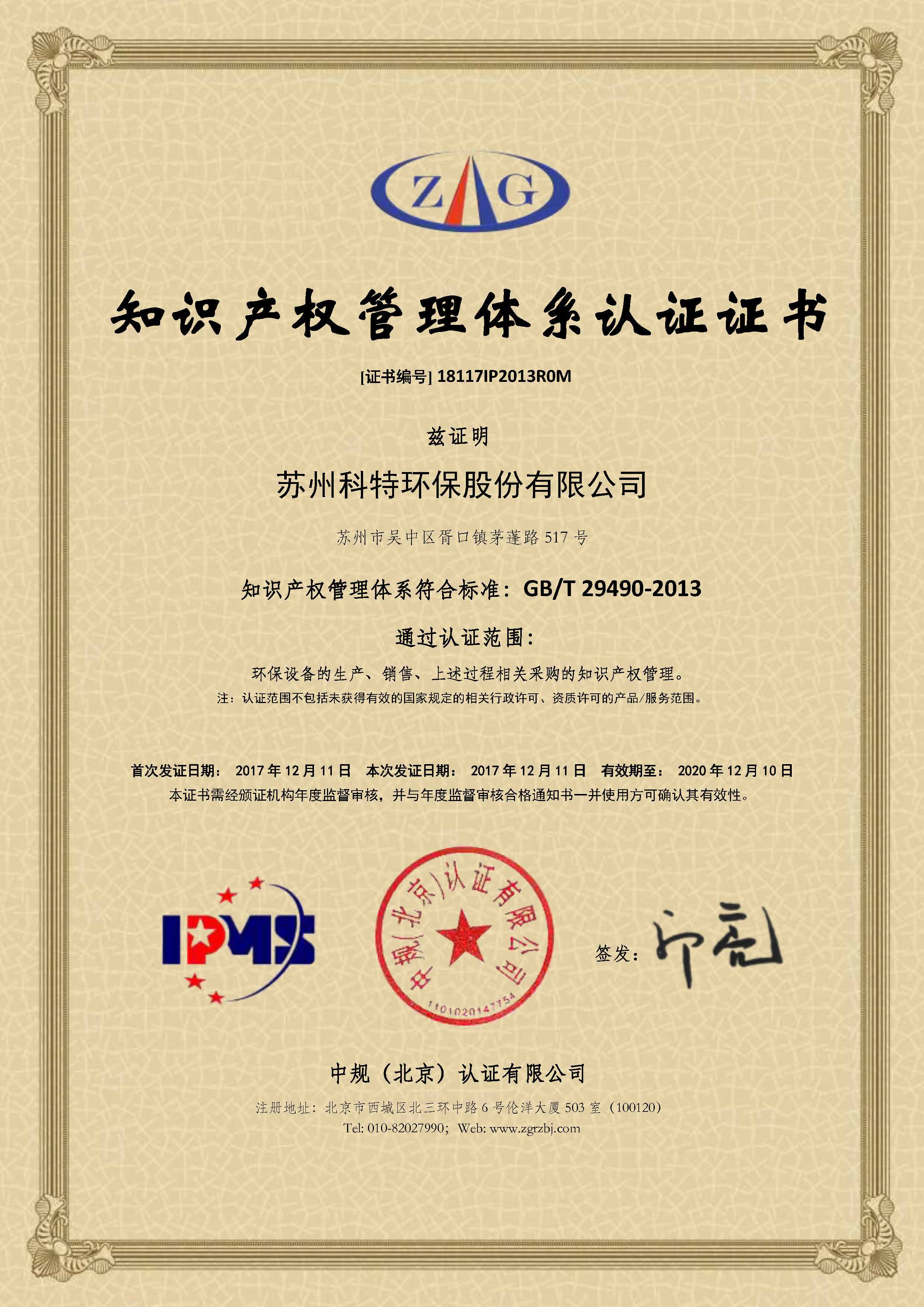 經(jīng)過一個(gè)多月的準(zhǔn)備和改正,蘇州科特環(huán)保順利通過現(xiàn)場(chǎng)審核,獲得知識(shí)產(chǎn)權(quán)管理體系認(rèn)證證書,今后我們將落實(shí)和不斷完善科特的知識(shí)產(chǎn)權(quán)管理的各項(xiàng)制度。