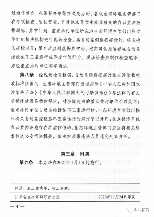 為加強(qiáng)對(duì)重點(diǎn)排污單位自動(dòng)監(jiān)控設(shè)施運(yùn)行的監(jiān)管,規(guī)范重點(diǎn)排污單位自動(dòng)監(jiān)測(cè)數(shù)據(jù)的執(zhí)法應(yīng)用,江蘇省生態(tài)環(huán)境廳近日印發(fā)《江蘇省重點(diǎn)排污單位自動(dòng)監(jiān)測(cè)數(shù)據(jù)執(zhí)法應(yīng)用辦法(試