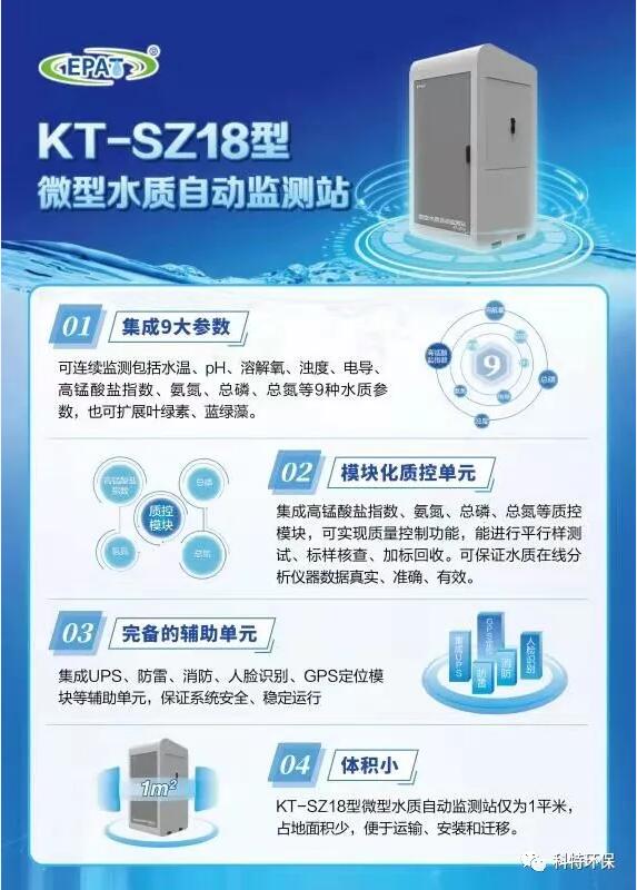 KT-SZ18型微型水質(zhì)自動監(jiān)測站僅為1平米,占地面積少,便于運輸、安裝和遷移。